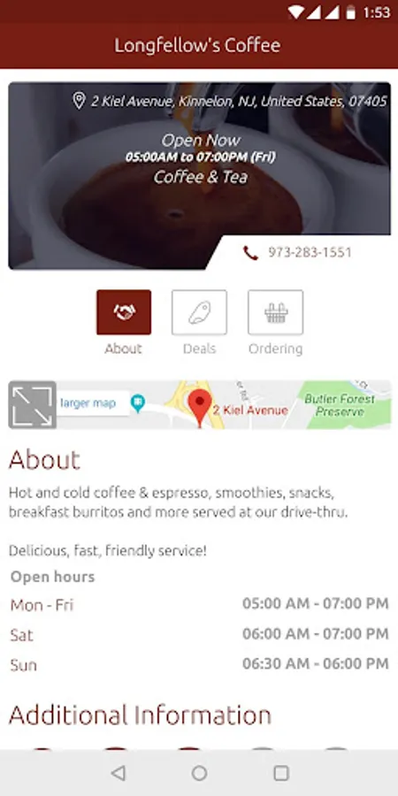 Opened in 2004, serves breakfast, lunch, coffee and drinks.