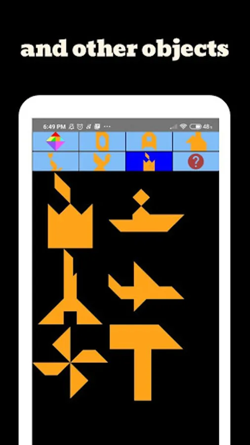 Complete the puzzle by combining 7 different pieces. Challenge your mind with this smart game!