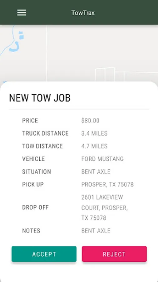 TowTrax Truck is an app that aims to improve the road assistance service (tow, flat tire, breakdown, etc.) for motorists by providing a platform for tow companies to share the network. Upon receiving road assistance requests from entities such as insurance companies and motor clubs, the app automatically finds and notifies the closest drivers to provide the service. This technology creates a win win situation for both the tow companies as they get more tows by sharing the network through the app, and motorist because the waiting time is significantly reduced due to the fully automatic process.