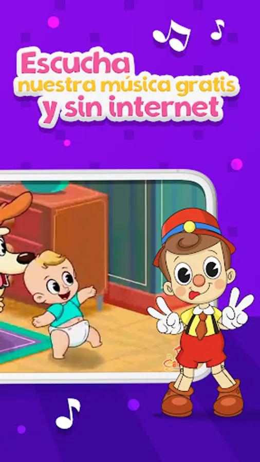 🐮🥳 Join La Vaca Lola, Pin Pon, Pinocchio and Patita Lulú on an exciting adventure, where the instruments come to life and the animals join the party! Immerse yourself in scenes full of color, rhythm and joy, while you learn and have fun to the rhythm of your favorite characters.