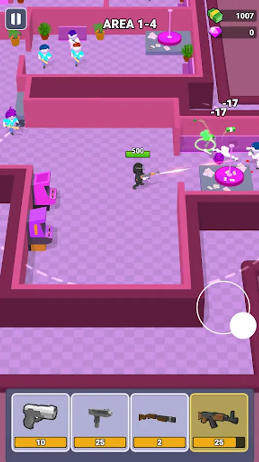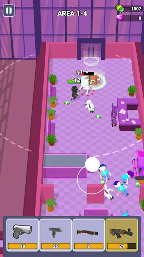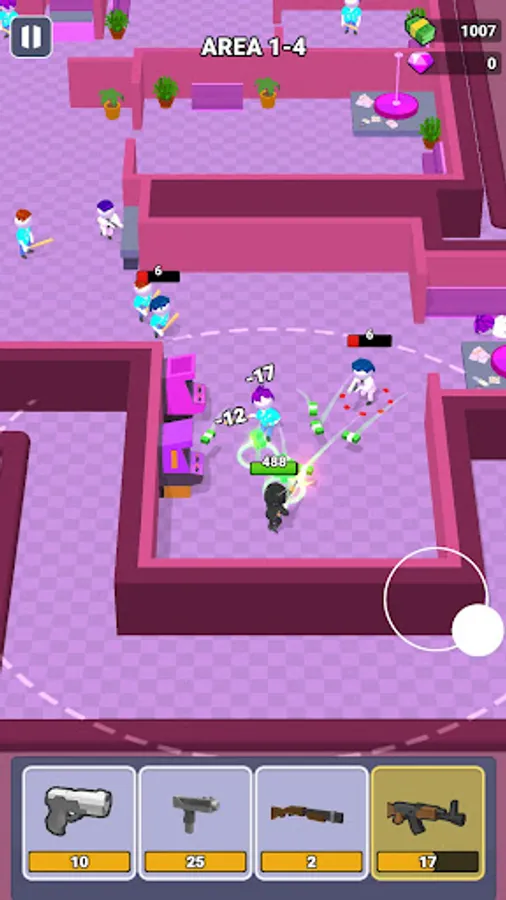 Defeat all enemies in the room with the chosen weapon and go through different areas!