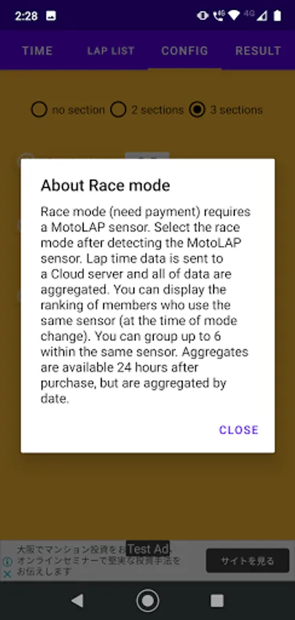 On Race mode (in-app purchase: 1 day unit, need the terminal),