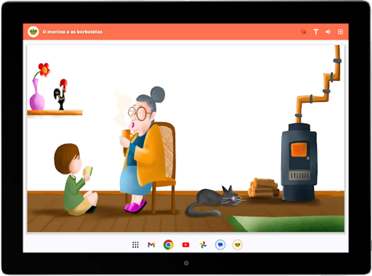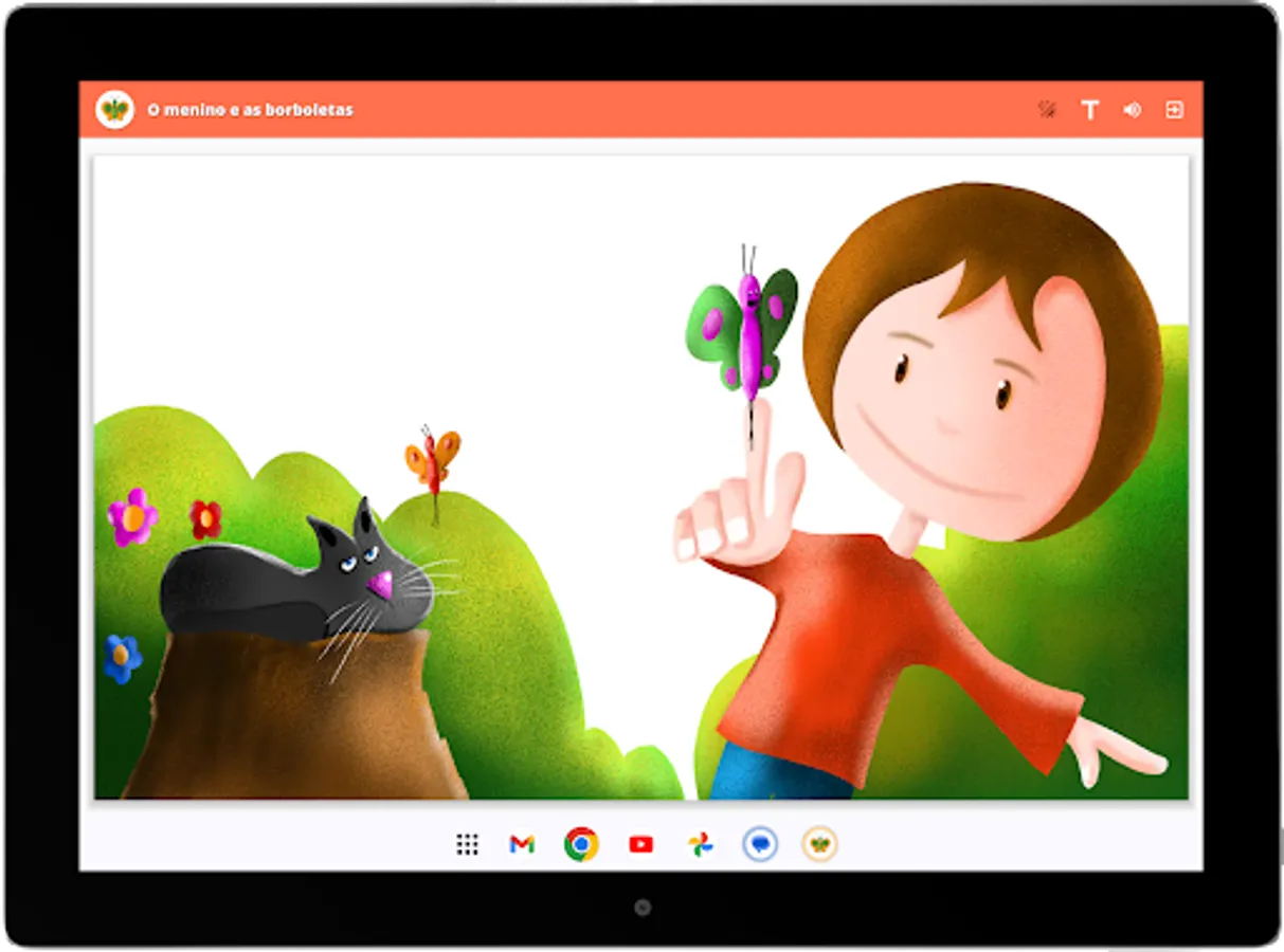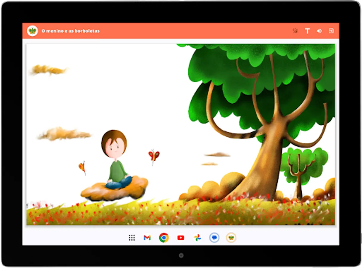 The "O Menino e as Borboletas" application offers readers a complementary experience, with audio-visual resources, text, illustrations and voiceover, making interaction and exploration of the story's content more immersive.