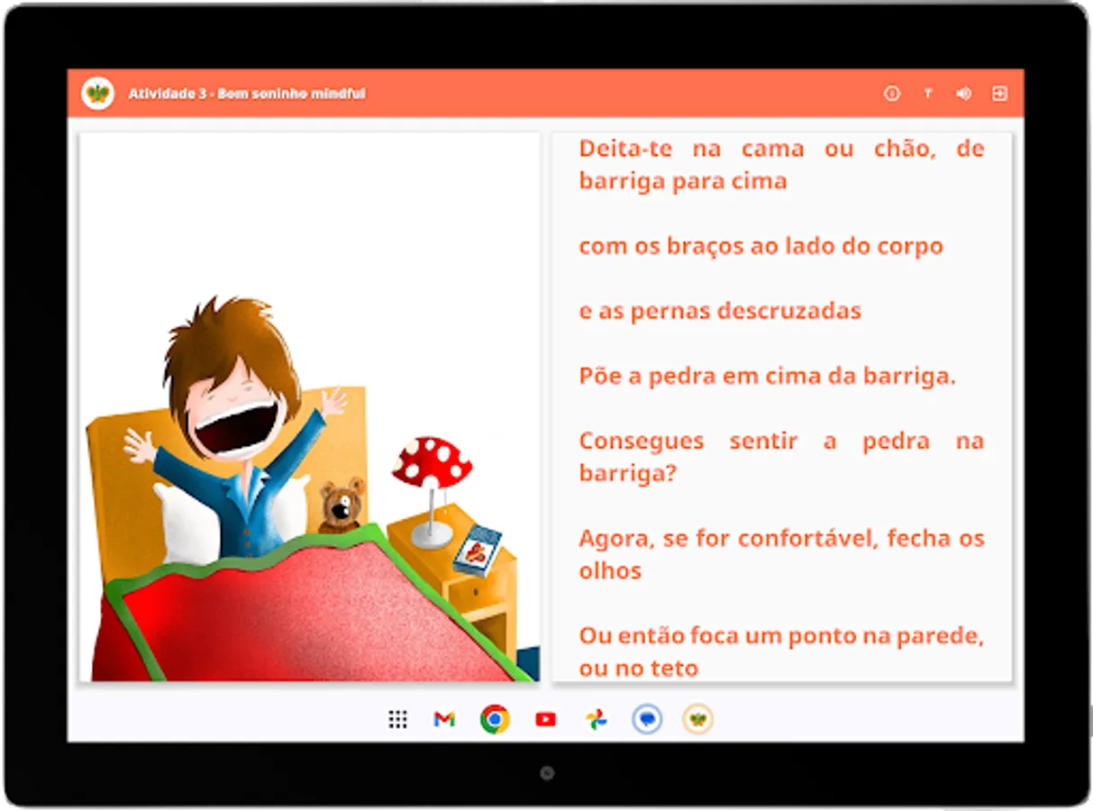 It includes mindfulness activities, designed by an expert psychologist, aimed at helping children develop mindfulness skills, relaxation and emotional awareness, promoting calm, improved attention, memory and kindness towards themselves and others.