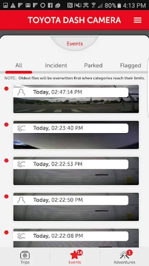 - For your safety, the app will disconnect from the TOYOTA DASHCAM if vehicle movement is detected. Do not operate your Android smartphone while vehicle is in motion.
