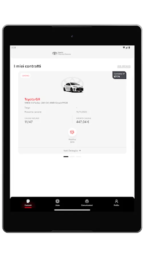 My Finance is the new APP designed for all Toyota and Lexus customers who have chosen a Toyota Financial Services loan. Safe, simple, personal, My Finance allows you to quickly and intuitively access your contract and always have the details of your plan available, be informed about upcoming deadlines and everything that can be useful for managing your loan. My Finance is available for all customers who have chosen a Toyota purchase formula and want to view their active contract or consult the history of loans already concluded. To access My Finance, you just need to have the user code and password provided when signing the contract. Within the application, you can quickly and intuitively browse all the areas created to: view the details of the financial plan and consult your amortization plan; inform you about the active and retail services of the insurance coverage available; access all documents relating to your contract or download them to have them available at any time; update your personal and payment details in a simple and secure way. You can also view communications dedicated to you in real time, access the FAQ section or send requests directly to our customer service! What are you waiting for? The My Finance APP is ready to accompany and support you in all the needs related to your loan agreement!