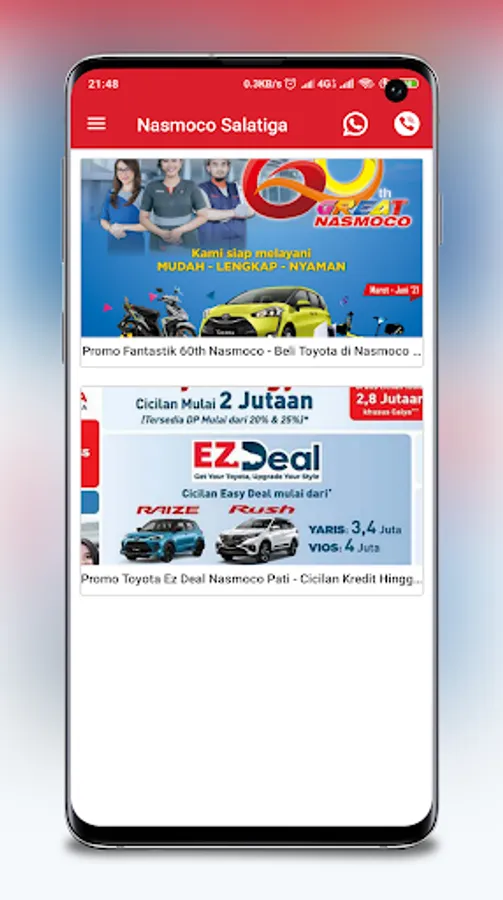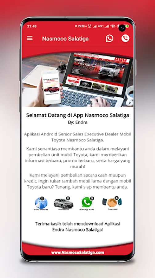 The Endra Nasmoco Salatiga application is an Online Catalog and Ordering Application for Toyota Car Units in the Salatiga Region, Ungaran, Semarang and surrounding areas.