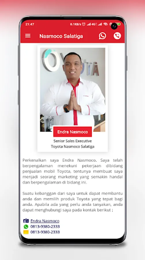 This application is managed personally by Endra, Senior Sales Executive of Toyota Nasmoco Salatiga Car Dealer.