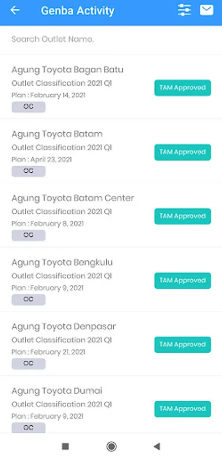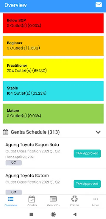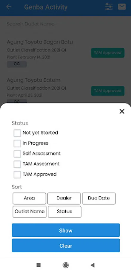 Sales Outlet Classification System is an application developed by PT. Toyota Astra Motor which aims to facilitate outlet evaluation activities, kaizen submission, and monitoring KPI submission data for User Outlets/Dealers and User Area Specialists.