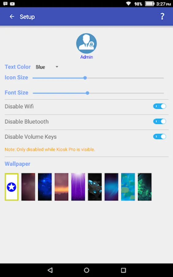 While in Kiosk Mode the Notification Toolbar is disabled so that the user can not access incoming notifications or make changes to the device settings.
