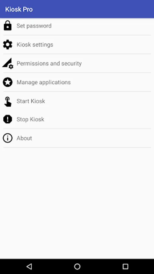 As a security measure we recommend that you enable Device Password in the Settings application in the Security screen. This will ensure maximum security in case the user tries to reset the device and bypass Kiosk Pro application.