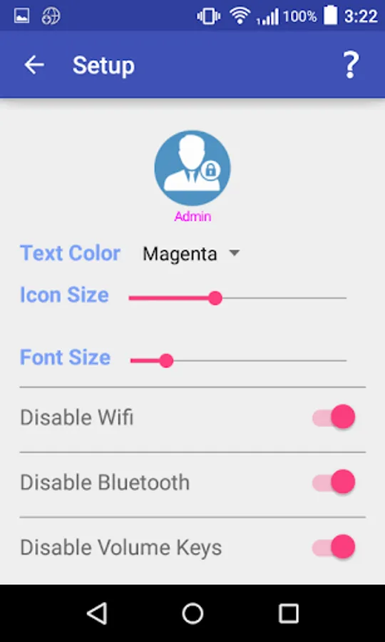 ← Passcode protected. Only you can change the settings in the application