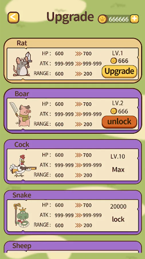 Battle of Animal is an animal arcade war game. You should constantly collect all kinds of alphanumeric characters to upgrade the altar; It can also save the soldiers in the prison and get more friends. It's very magical. Come and join us!