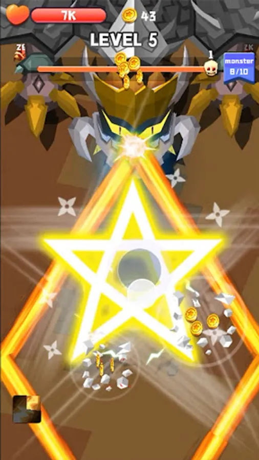 "Blade of Kings" controls the hero's movement by sliding the screen. At the same time, don't let the monster touch the hero. Use the outer circle of the flying knife to attack the monster. Reasonable use of skills can easily pass the level!