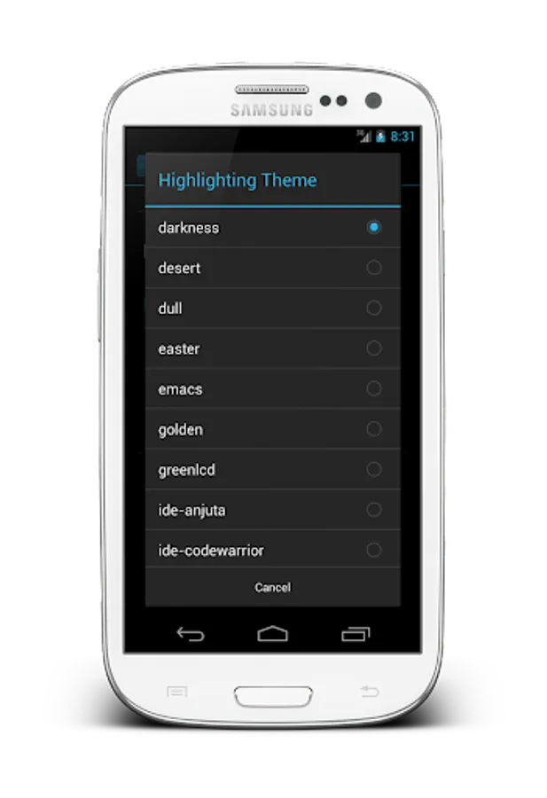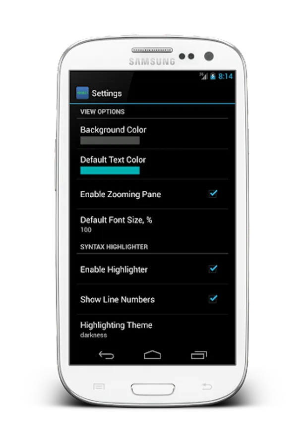 It supports different syntax highlighting themes, adjustable colors, line numbers, text wrapping, in-source active links, mobile and desktop browser modes and other features.