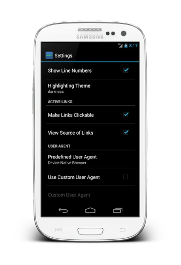PLEASE BE AWARE: This application requires INTERNET permission to access remote pages and WRITE_EXTERNAL_STORAGE permission to save source codes locally.