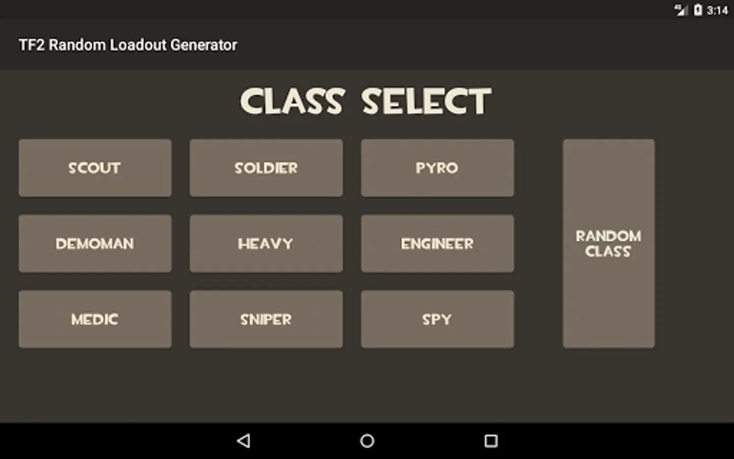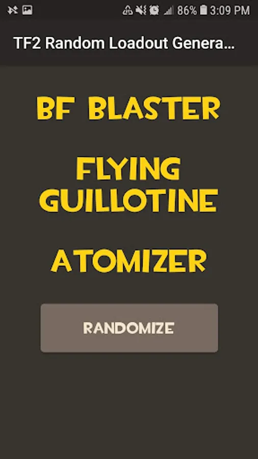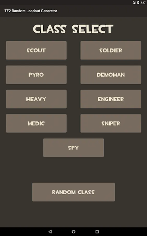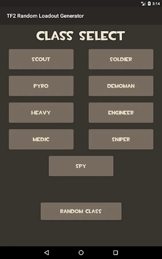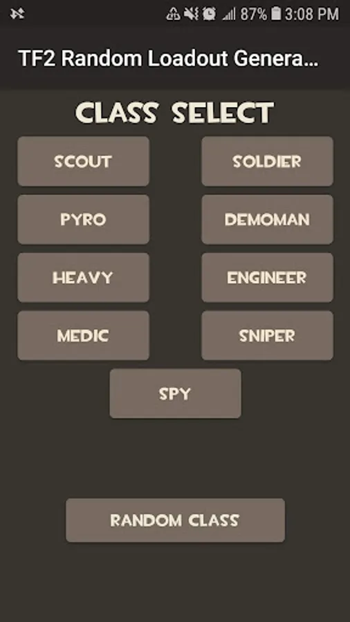 A simple random loadout generator for TF2, with options to choose between all 9 classes with all items currently available added. In the press of a button, you have a complete loadout to use.