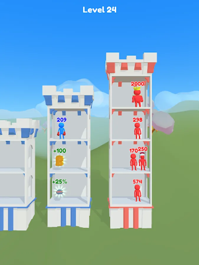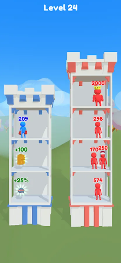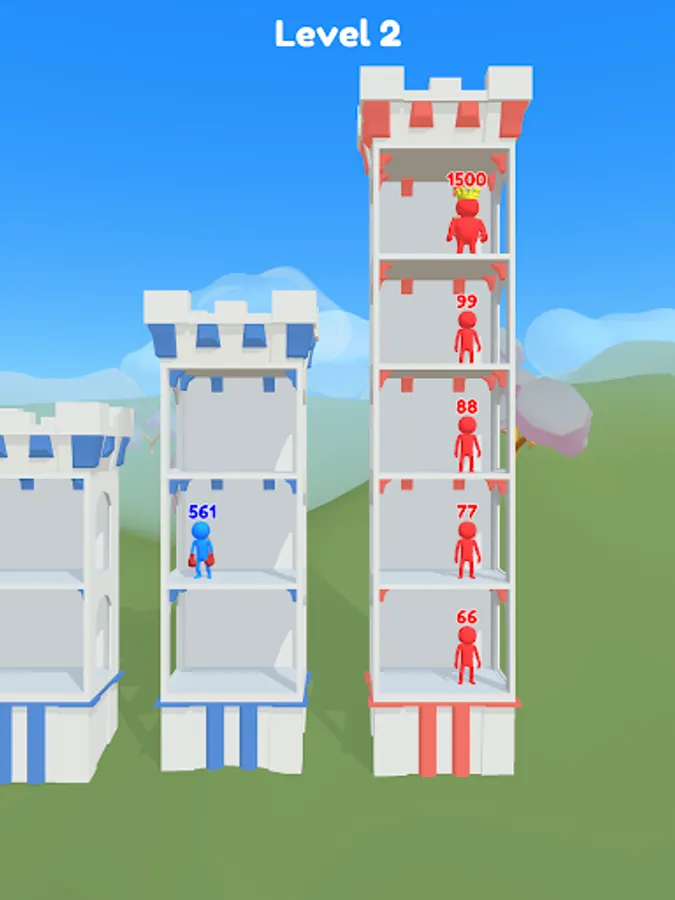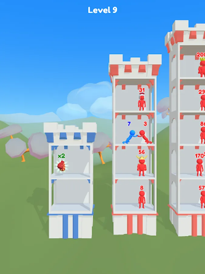 Push Tower is a simple and easy to learn turn based number strategy battle game. Start your adventure in tiny tower in a small town and use your wits to wage wars and fight, raid and conquer enemy castles along the way. Push mighty crowds of enemies off each tower floor. If successful, you will gain their power, takeover their towers and get one step closer to defeating the boss king. Collect powerups, treasure chests and new towers along the way to help you defeat your enemies.