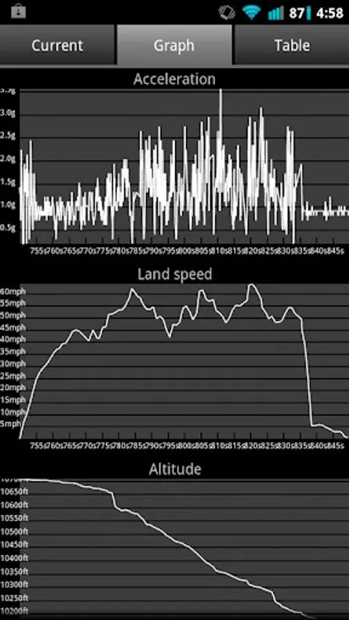 Ever want to know how fast you were travelling or how many G-forces you encountered while doing a certain activity? This app will record your GPS speed as well as your acceleration and plot it in a graph.