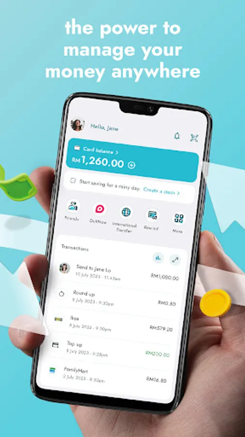 With the power to manage your money anywhere, BigPay has one purpose, - to empower you with essential financial services to level up your lives, one transaction at a time. With the flexibility of a mobile app and physical card, we give you the flexibility to improve your spending habits in one place.
