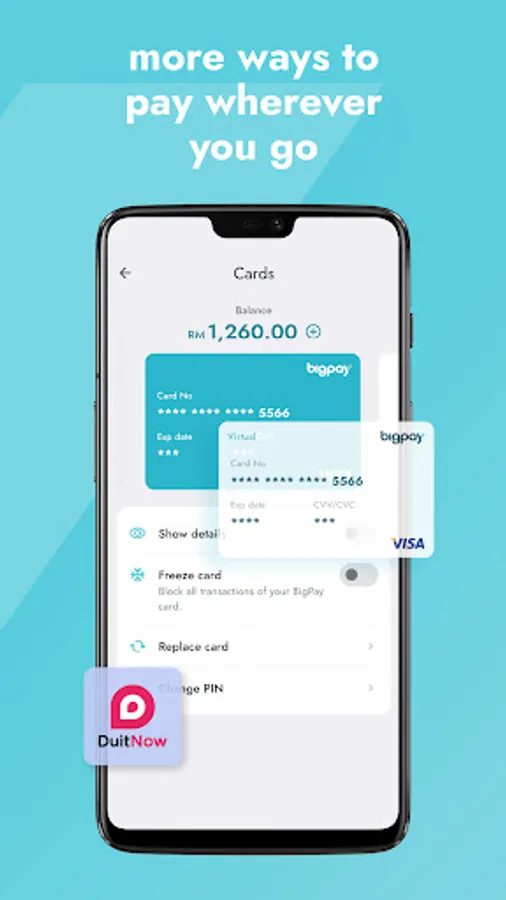 3. Pay with PHYSICAL AND VIRTUAL VISA CARD or even make DUITNOW QR PAYMENTS in Malaysia, Singapore, Thailand, and Indonesia