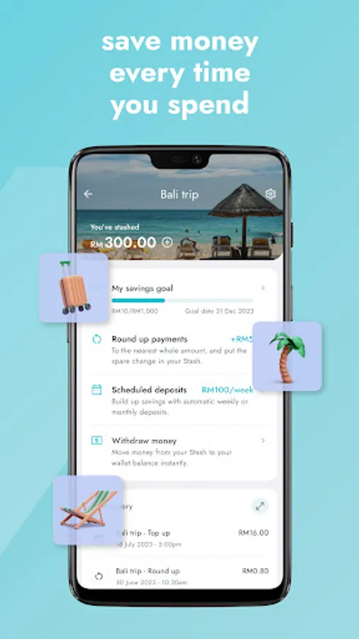 Save a little (or a lot) whenever you spend with Stashes. Create multiple Stashes for all your financial goals