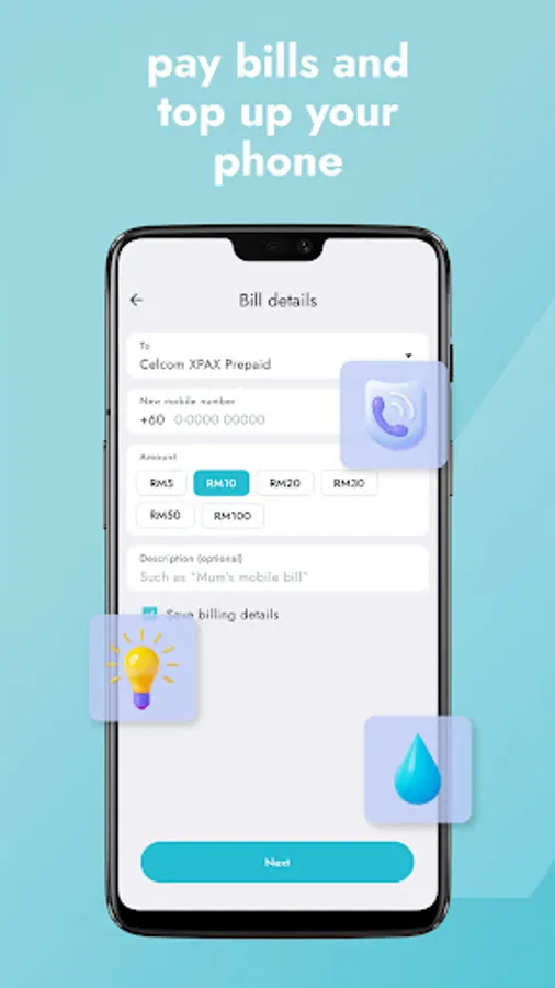 Use BigPay for all your money needs in one app. Pay your home utility bills such as electricity, water, internet, and more; plus mobile top ups and even lifestyle insurances to give you peace of mind in your daily life.