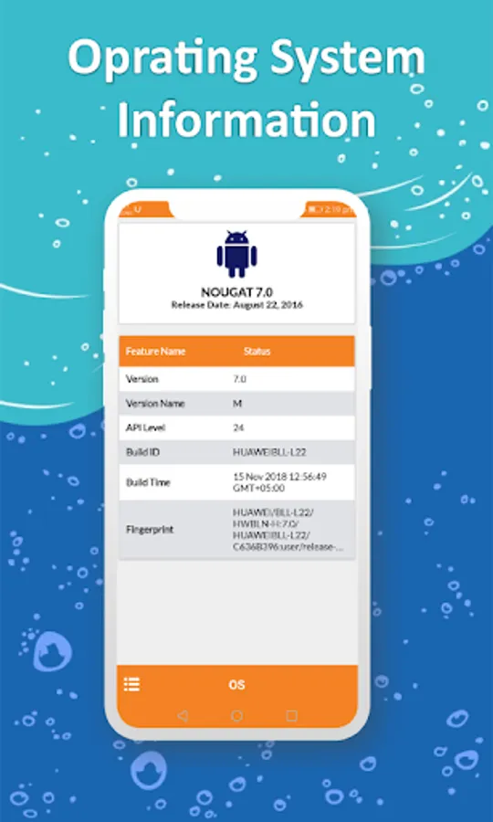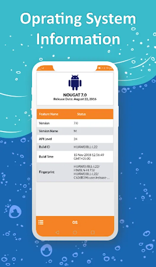 This imei checker free shows you all the device info, Hardware and software information about your Mobile Phone. See the build serial, check imei, Memory info Battery info and network, operating system and many more.
