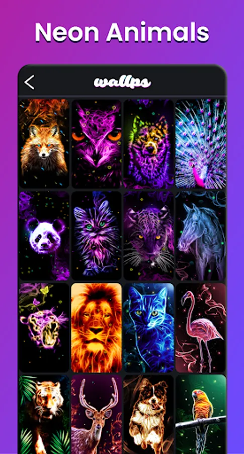WALLPS offers a great variety of backgrounds - choose among numerous cute live wallpapers, but then opt for the dark ones if that’s what you like. And not only that! Have different 4k wallpapers that move and change them every day! Just download to see how many categories we offer. You simply have to try animated live “wallpapers and backgrounds moving” - WALLPS! Set a background with clock accompanied with a cool wallpaper live 4k hd ASAP. Don’t wait anymore. See how this moving wallpaper app will look like on your display. Set one of the neon live wallpapers to catch everyone's attention! Download neon animals wallpaper live easily! Grab the Moving Backgrounds 4k - WALLPS for the ultimate wallpaper change experience!