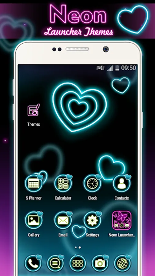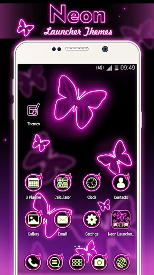 Treat yourself with one of the most amazing free launcher apps and illuminate your phone! Bright colors and awesome neon glow art are the things that make these colorful themes one of the best personalization apps on the market! Check out all the home screen wallpapers neon glow that this “new theme app launcher” has to offer, choose the one you like the most and decorate your phone in an instant! Personalize your mobile device by choosing the amazing icons pack, “neon phone themes” and setting clock live wallpaper for home screen. With brand new design launcher you can enjoy the mesmerizing neon lights every time you take a look at your phone or tablet! Download “Neon Launcher Themes” for free and make your screen glow like never before!