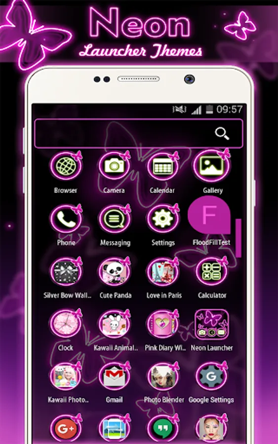 Are you bored with your old home screen theme and want a new neon app launcher? Wait no more but download one of the best theme launchers for Android right now! Featuring “colorful phone themes” and plenty of customization options, this beautiful launcher for girls and boys really has it all. Use one of the best apps to decorate your phone and make it unique! Personalize neon backgrounds and set wallpaper clock on home screen. Choose whether you want static or “neon live wallpaper free” of charge, create folders and have a cool icon pack instead of your old one. Be the first among your friends to have this awesome “launcher with live wallpaper” and spread the news! Install Neon Launcher Themes today and enjoy bright glowing lights for phone screen!