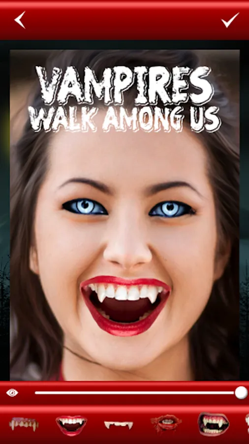 Do not hesitate, download Vampire Yourself Camera Editor and you will make your smartphone or tablet richer for one of the best photo editing apps. You will be overwhelmed with this vampire photo editor. It is so efficient, yet so simple to use. Don't wonder “how to turn yourself into a vampire” anymore, you don't have to use those complicated picture editing tools, all you need to do is take a perfect selfie with your camera, paste these cool stickers and – voila! – your scary photo is ready.