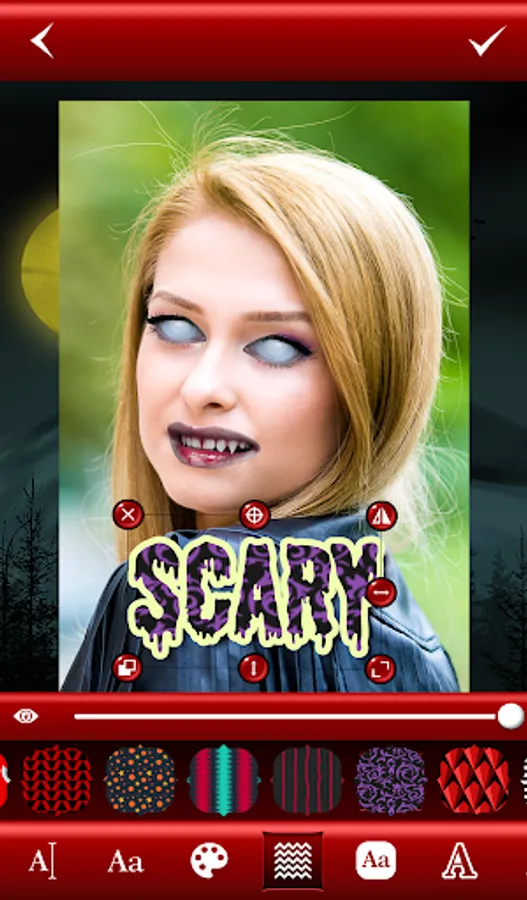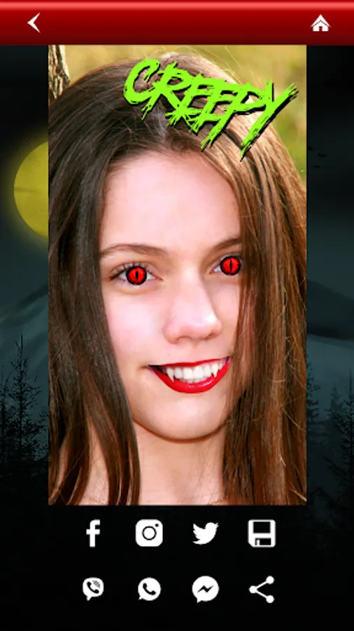 Get ready for Halloween party, download your scary picture editor and make up a horror story for your pajama party! Cool photo editing has just got better, exploit your “vampire camera effects” for free, add horror stickers for pictures to your face, and let this picture editing software do the rest. Easily put text on your photos, add a sticker that will scare everyone, montage yourself and indulge in some funny picture editing! Tell your friends to type “Vampire Yourself Camera Editor”, download this scary picture maker, and see what real fun is!