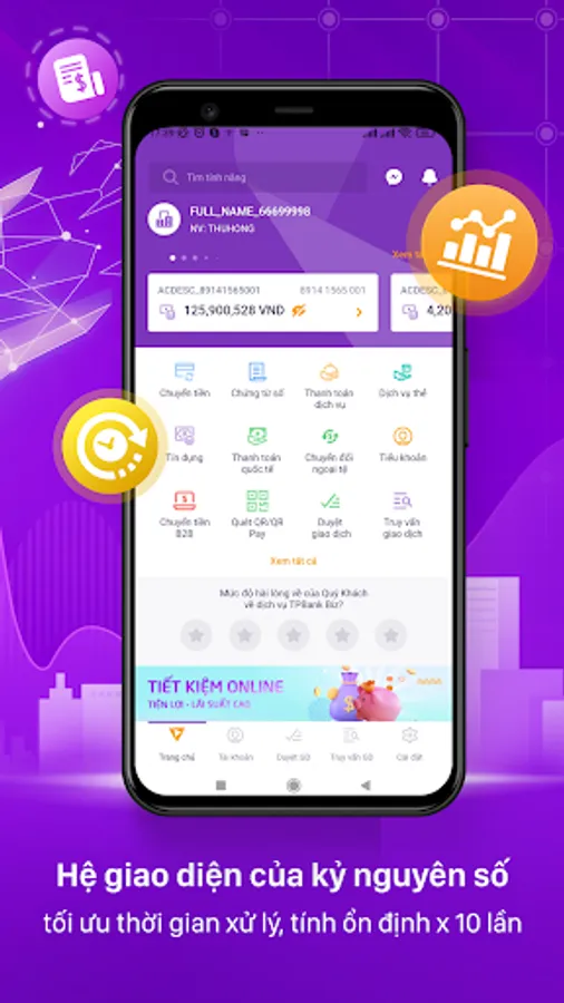 - Hệ giao diện UI/UX Biz-Xperience lấy trải nghiệm người dùng làm trung tâm, cho phép giảm tối đa thời gian xử lý các tác vụ tài chính tới 50% và tăng hiệu năng, tính ổn định lên tới 10 lần, sử dụng thông suốt qua tất cả các nền tảng và điểm giao dịch .