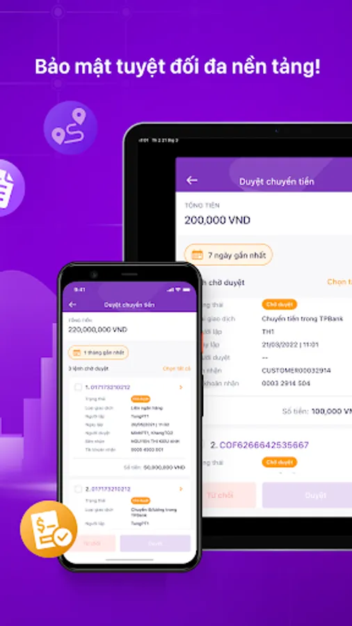+ Kết nối và tích hợp eToken+ Biz với tính năng Multi-user cho phép quản lý đa tài khoản và phê duyệt giao dịch theo lô thuận tiện trên 1 màn hình/1 ứng dụng.