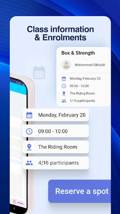 Effortlessly access class schedules, book classes, and receive timely notifications, updates, and reminders directly on your phone.