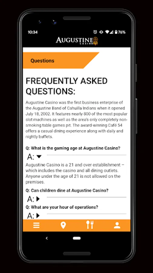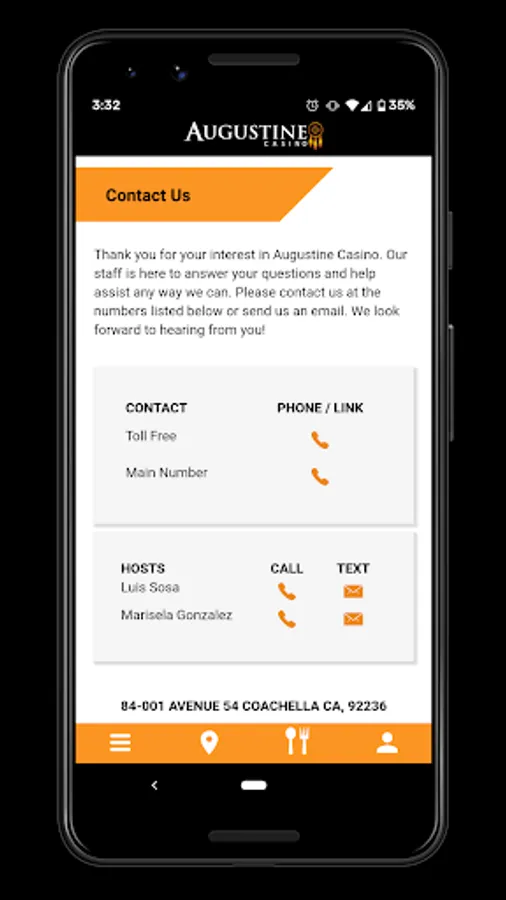 This interactive mobile app lets you view all of your Advantage Club membership details from the palm of your hand. Check your free slot play balance, comps balance and tier status. Use your app to redeem comps at Cafe 54 and Menyikish Grill. Receive exclusive bonus offers and rewards only available to app users. Easily access our restaurant menus and view all current promotions. Contact your host at the touch of a button. Augustine Casino offers over 750 slot machines plus award winning dining. Join our Advantage Club and win up to $25 in free slot play during your first visit. Augustine Casino, Coachella's Best Kept Secret.