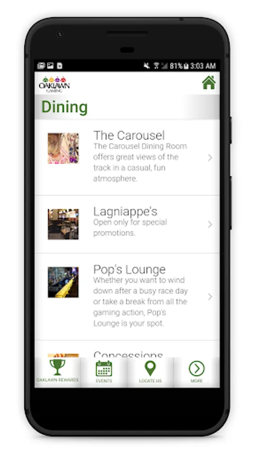 The Oaklawn Rewards App provides Oaklawn Rewards members access to their exclusive gaming offers and promotions. In addition, users will receive notifications of special app-only offers. The app will provide guests with the ability to see their current point balance and the ability to search over a period of time so they can see the quantity of entries for certain promotions. The app will be a one-stop shop for our Oaklawn Rewards members.