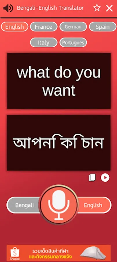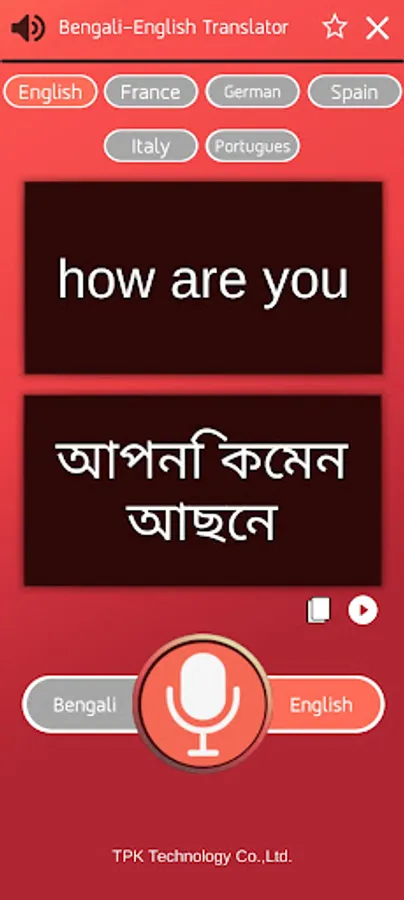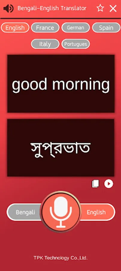 Bengali translator app to English and other European countries.