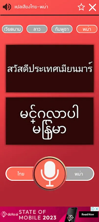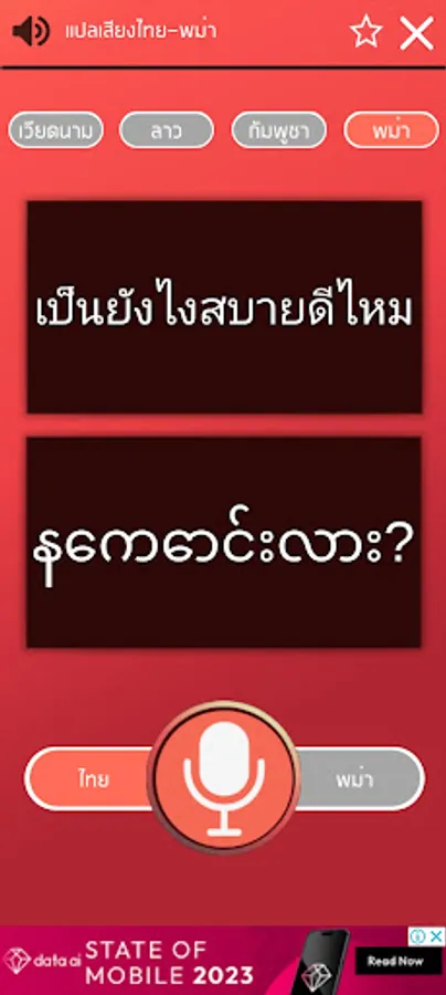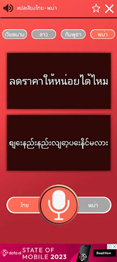 - Speak Thai and translate into Burmese (This version doesn't support Burmese speaking yet)