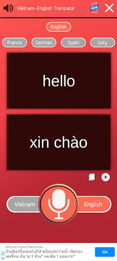 It can be quickly translated into English, French, German, Spanish, Italian.