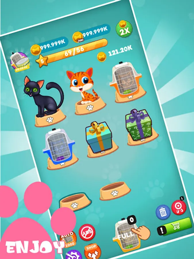 This game combines the adventure of merge puzzle games in the kitty world. The gameplay is simple, merge similar kittens and cats to breed and pet a new sire. Unlock all neko with cute toe beans and paws to fulfill your feline wishes.