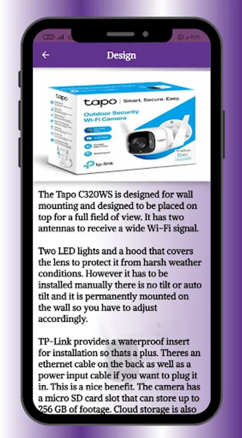 You can find all the details you require about the Tp-link tapo c320ws in this app.