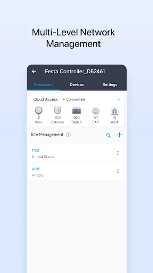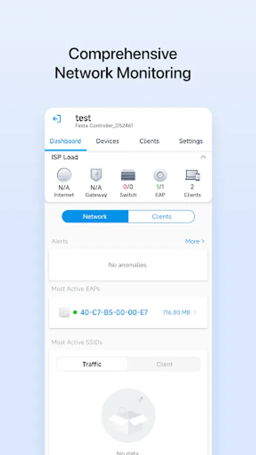 Festa app is used for configuring and managing your internet and WiFi. You can deploy devices, change settings, monitor the network status and manage clients, all from the convenience of a smart phone or tablet.