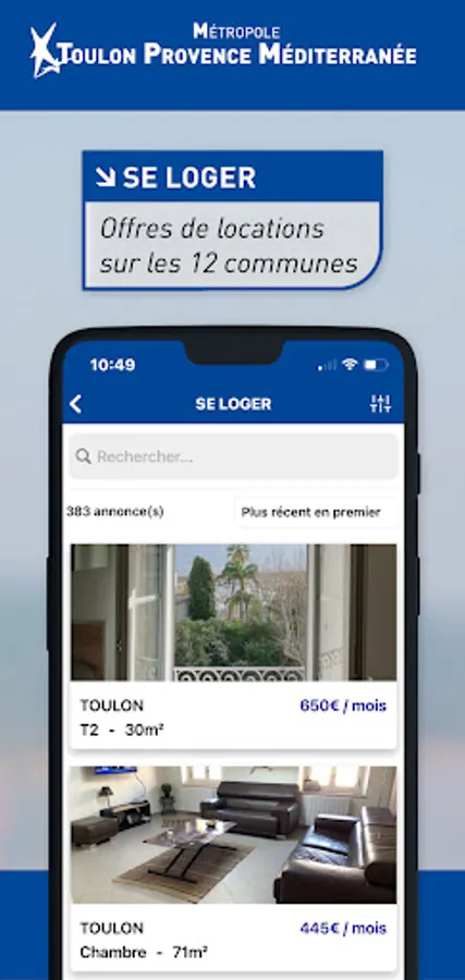 The section "Accommodation" allows you to consult housing offers intended mainly for students and coming from the offers of the Maison de l'Etudiant and Youth Information of the City of Toulon and the "Lokaviz" platform. After a presentation of the housing offer, it is possible to contact the issuer of the offer. After identification by surname, first name, email, telephone (optional), INE number, submission of CV and cover letter (optional), a notification is sent to the Maison de l'Etudiant et de l'Information Jeunesse de la Ville de Toulon or the “Lokaviz” platform for examination and treatment.