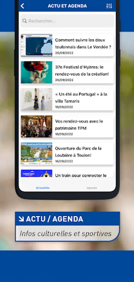 The "News and Agenda" section allows you to consult the cultural, sports, event and practical news of the Toulon Provence Méditerranée Metropolis.