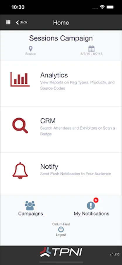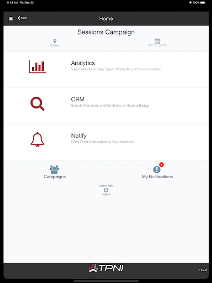 TPNI brings its Event Marketing Platform to the mobile app. This application allows the TPNI customer to view analytics, search, edit, export and print a record. To quickly view a record, you can either scan the attendee’s confirmation or scan the QR code on the attendee’s badge. You can also search a record by using our dynamic search feature. This searches through a combination of name and company. You can narrow your results by using the advanced search feature which allows you to filter by registration type, products, and alerts. The TPNI Manager app also allows you to set up push notifications that will send you an instant alert when a record has been printed.