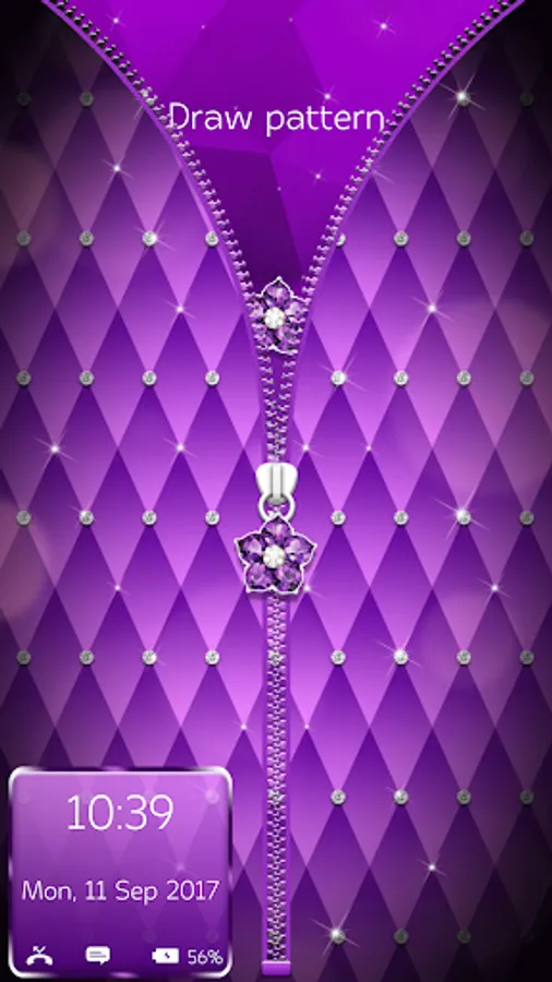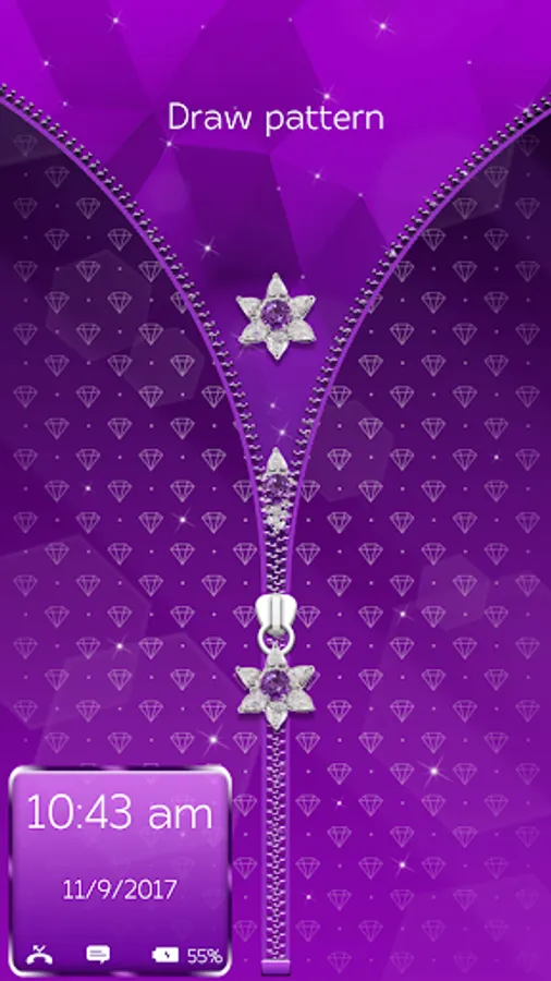 This time you have the opportunity to try out something new and download a “zip lock screen with pattern” that will change the way you unlock your phone. Set a beautiful purple diamond “flower lock screen wallpaper” that will take you to the magical world of sparkles and glitter. With the help of our “diamond pattern lock” and lots of wallpapers and backgrounds for lock screen you'll be able to change locked screen wallpaper every single day! See what it feels like to have a zipper lock screen with pattern as your display locker and enjoy beautifully crafted “purple diamonds” and flowers every time you look at your girly smartphone. Prepare to have a blast with our cute “Purple Diamond Flower Zipper Lock Pattern”! We guarantee that it will brighten up your day!