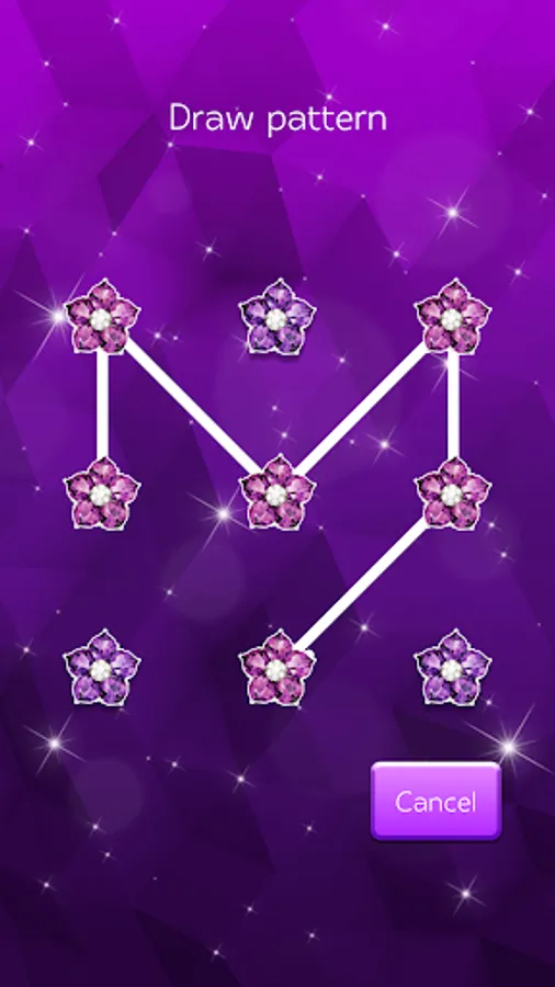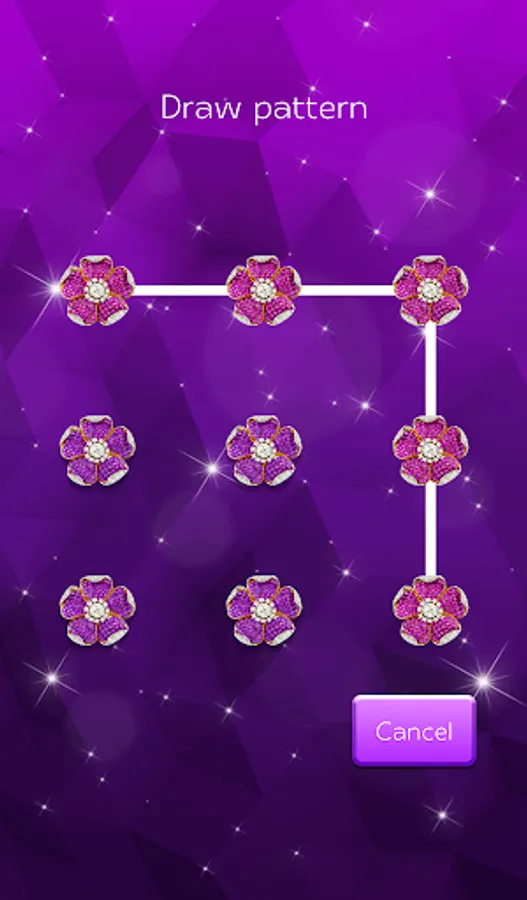Install one of the best “pattern lock screen apps” free of charge, choose among lots of cute diamond backgrounds for lock screen, set up a pattern and enjoy the view! Our “flower zip lock screen” is not only fun and games, it also serves to secure a phone or tablet from intruders! Lock and unlock your phone in the simplest way possible: just set the pattern lock with many dots and sit back. Nobody will be able to access your phone unless you let them, plus you will have the most fashionable screen locker theme of all of your bffs. Enjoy the beauty and security of your pattern lock mobile! Download Purple Diamond Flower Zipper Lock Pattern free of charge today!