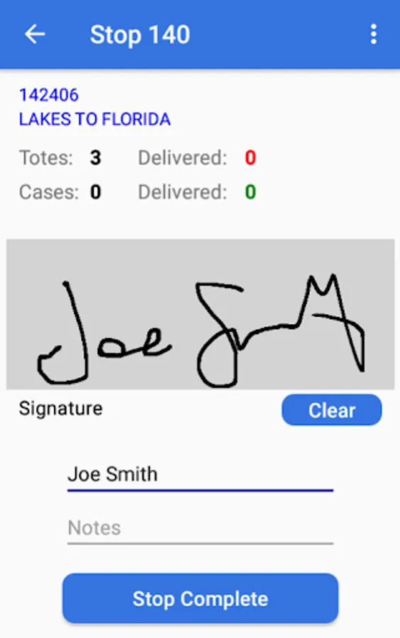 TurningPoint customer route/stop delivery driver app. Get signature(s) at drop off. Pickup RMA items. Collect COD $. Proof of delivery.